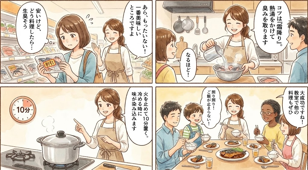 「魚料理のレパートリーをもっと増やしたいな」「料理の基本を知りたいな」と思ったら、ぜひ一度、体験レッスンに遊びに来てくださいね。美味しい香りに包まれた教室で、皆さんにお会いできるのを楽しみにしています。
