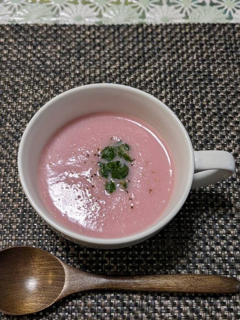 ピンク色のスープが食卓に並ぶと、なんだか心まで華やぎますよね。