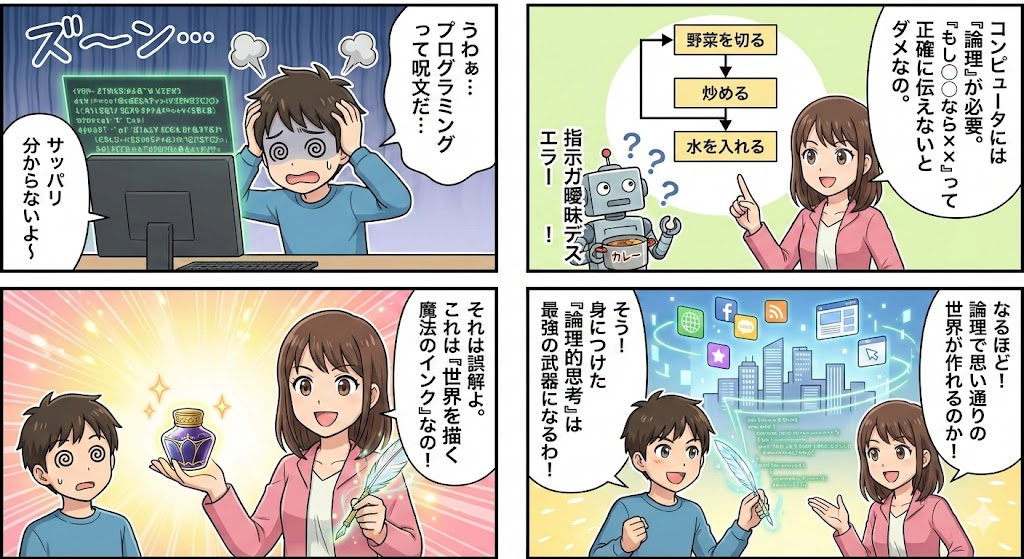 この 「因果関係の確定」 こそが、プログラミングの本質であり、エンジニアが作り出す「絶対的な正しさ」の正体なのです。