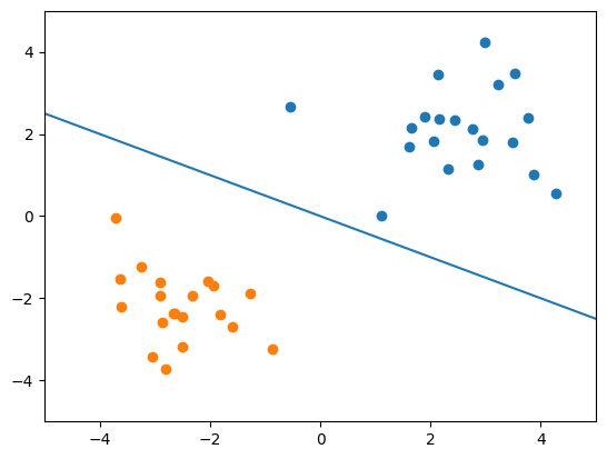さて、ここまでの話は、データが一本の直線(あるいは平面)でスパッと分けられる、という前提でした。