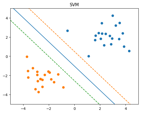 - SVMは、マージン(境界と最近傍データ点との距離)を最大化することで、最も安定した境界(超平面)を見つけ出す。