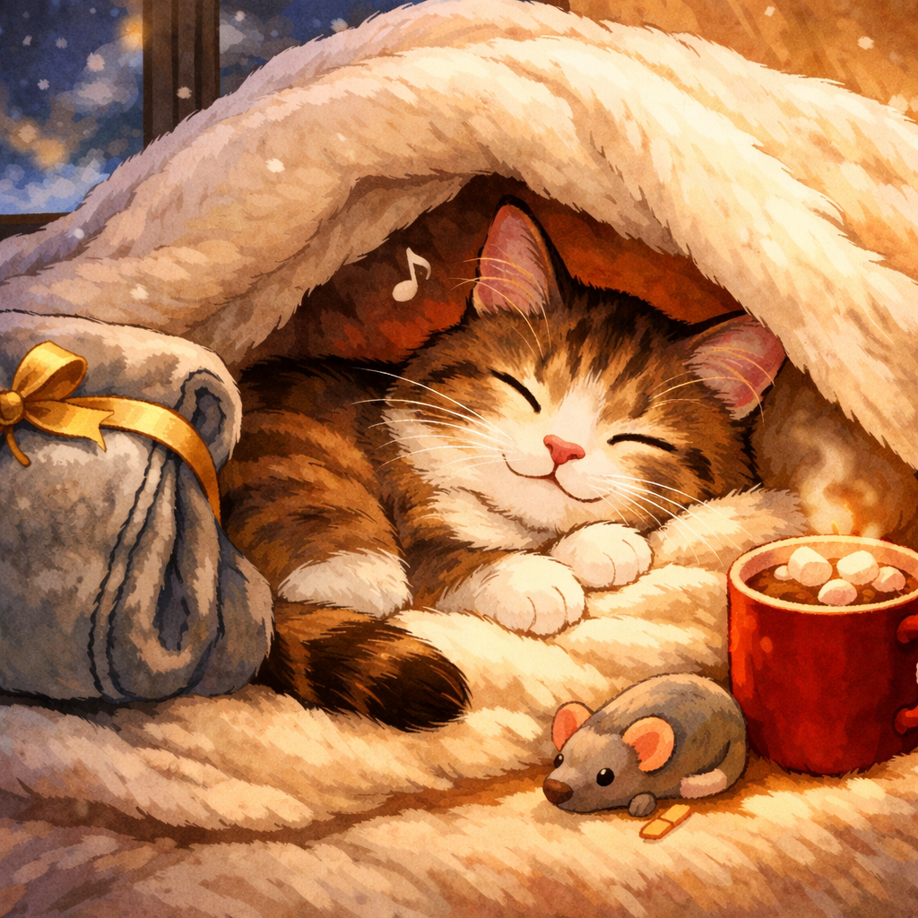 うちの猫は、冬になると毛布にくるまります。