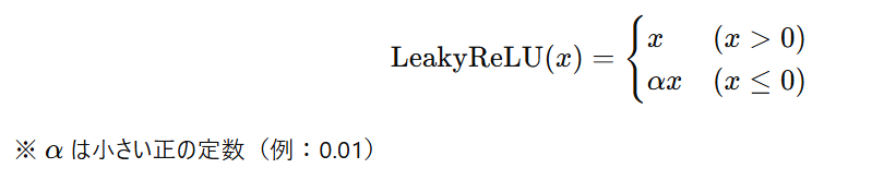 - 仕組みマイナスの値が入ってきたとき、完全に 0 にするのではなく、ほんの少しだけ(例えば 0.01倍して)値を通します。