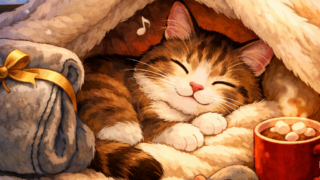 我が家のにゃんこは、冬場になるといつもオレンジ系クッションの上で丸まっています。このクッションは、寒い季節に暖かさを感じてもらおうと選んだものなんですが、案の定お気に入りに!