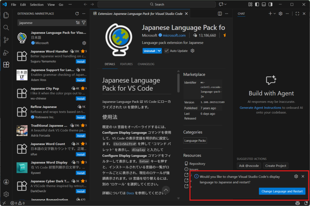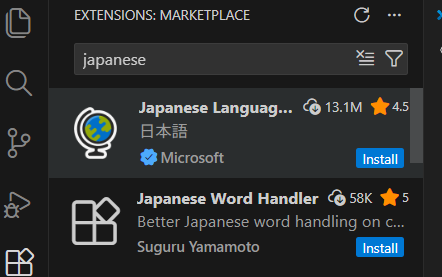 - 「Japanese Language Pack for Visual Studio Code」を見つけます