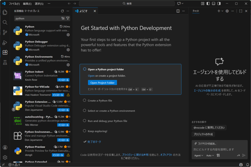 3.1 Python拡張機能のインストール