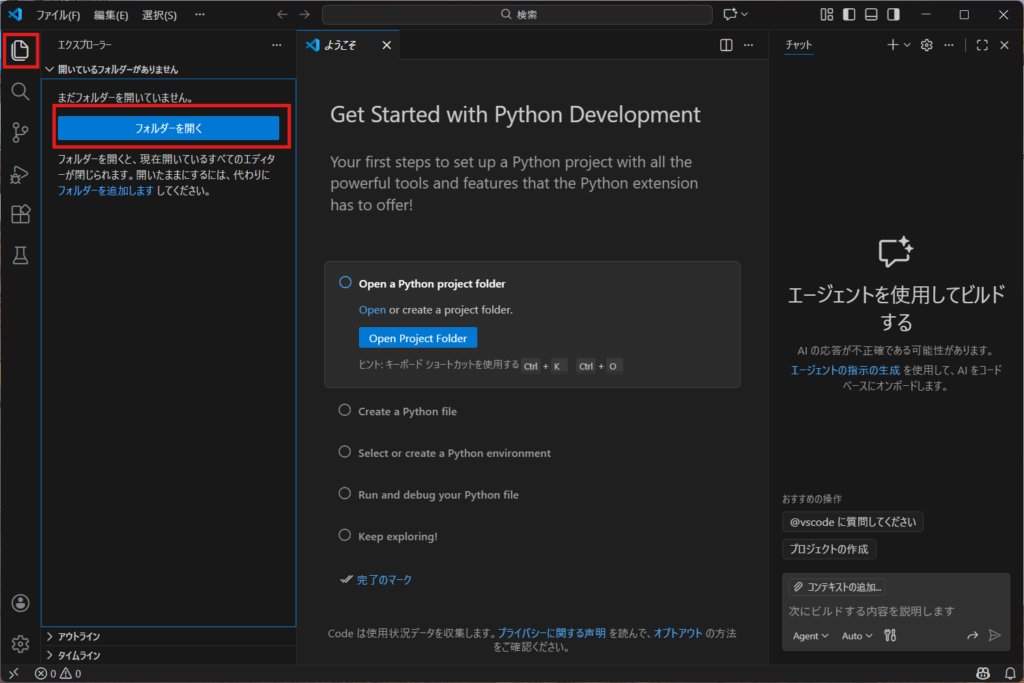 - VSCodeでフォルダーを開く