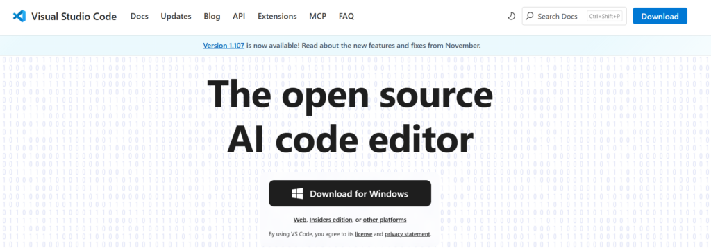https://code.visualstudio.com/を開きます