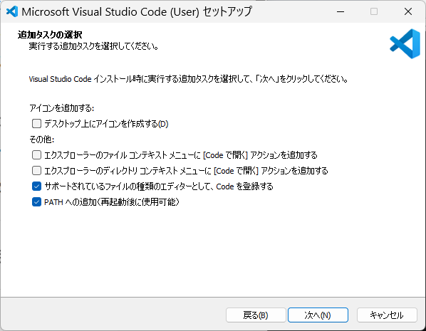 - 「その他のタスクの選択」では以下にチェックを入れることをお勧めします: